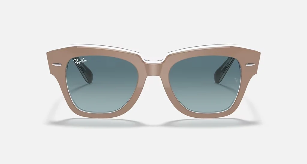 Ā The Wayfarer family continues with the Statestreet. Its elegant, squared shape, crafted from acetate and available in a selection of colors, creates a contemporary style. Dare to wear them in a range of colors, including solid and bilayer options, combined with classic, gradient or polar lenses. The on-trend acetate temple tips and Ray-Ban logo complete the picture.