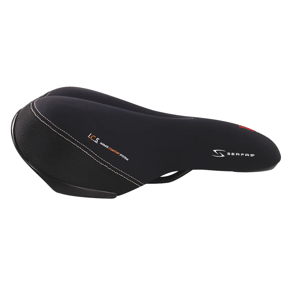 The Serfas® Dual Density® line of saddles is constructed using our patented I.C.S. (Infinite Comfort System) technology. Made up of a soft flexible rubber base followed by two layers of soft and firm closed cell foam, and a final top layer of friction reducing Reactive Gel® covered in moisture-wicking four-way stretch Silk-Tech Lycra.
